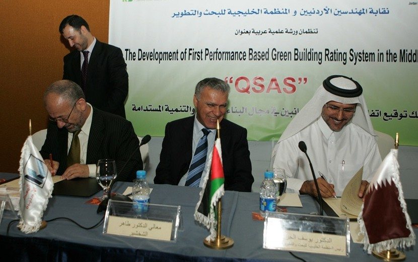 The Gulf Organisation for Research and Development, Qatar’s leading research, consultancy and training institute and the developer of the Qatar Sustainability Assessment System (QSAS), has recently entered into a Memorandum of Understanding with the Jordan Engineers Association (JEA). The agreement was signed by Gulf Organisation for Research and Development co-founder and chairman Dr. Yousef Mohammed Al Horr and JEA President Eng. Abdulla Obaidat.