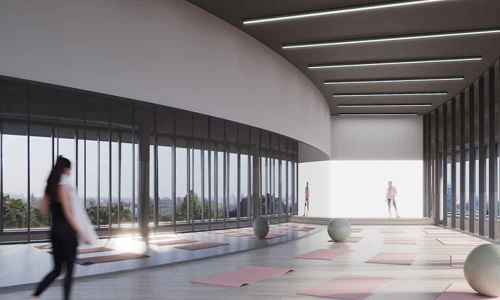Situated in a distinctive elliptical building and surrounded by green landscaping, Wellfit Aljada is spread over two floors. The fitness centre contains separate men’s and women’s gyms, assessment areas and fitness studios, with space allocated for Mixed Martial Arts (MMA), yoga, spinning and a special studio dedicated to children.
